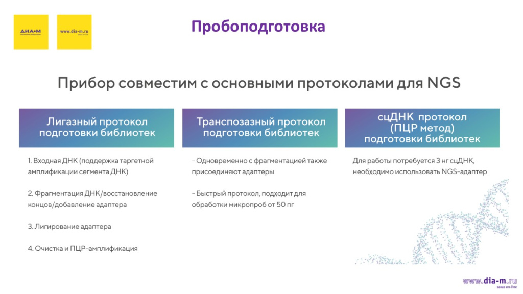 GenoLab M совместим с основными протоколами для секвенирования NGS.