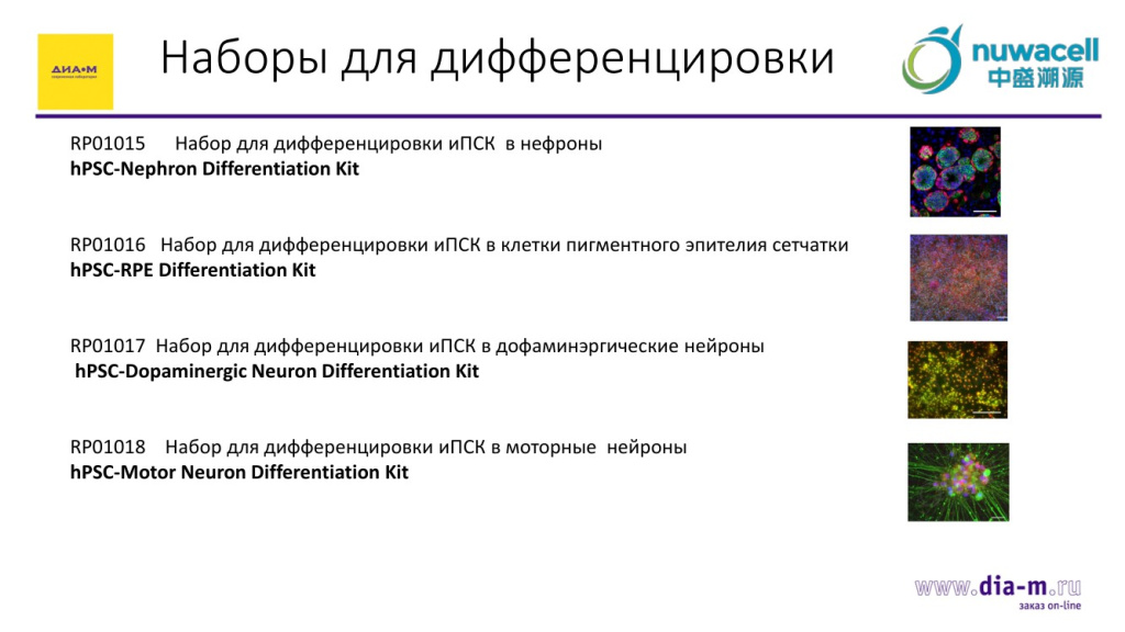 Этот пример показывает, что информационное или методическое сопровождение тоже присутствует, причем на очень качественном и доступном уровне.Набор для дифференцировки иПСК в нефроны-1