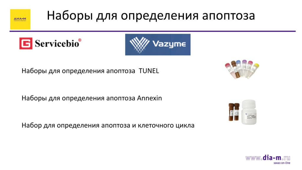 Классический набор для определения апоптоза – это TUNEL. Он есть у обеих компаний: например, Vazyme создал свой интересный набор с усилителем окраски, чтобы окраска была более яркой и презентабельной: это его запатентованное новшество.