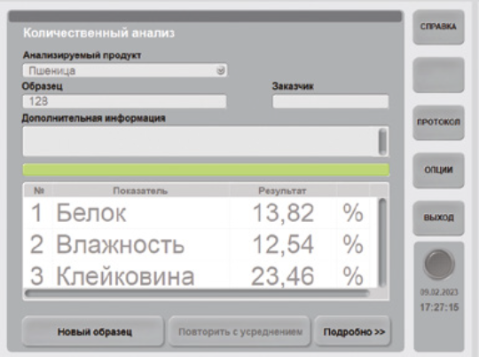 - Одновременное определение всех (в том числе клейковины) анализируемых показателей за 1,5 минуты;