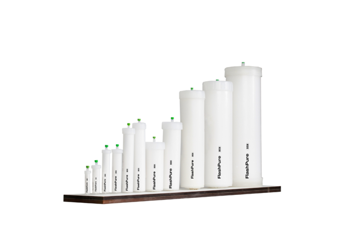 Флэш-картриджи FlashPure представляют собой пластиковые хроматографические колонки разных размеров, заполненные нормально-фазовыми или обратно-фазовыми сорбентами на основе силикагеля или оксида алюминия. Обычно их используют для очистки полярных и неполярных органических соединений, углеводородов, липидов и белков.