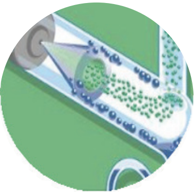 Распылитель превращает элюент в в мелкодисперсный аэрозоль Растворитель испаряется в потоке пробирки и выпаривается на самом низком уровне температуры. Интенсивность рассеянного света напрямую связан с массой элюированного компонента.