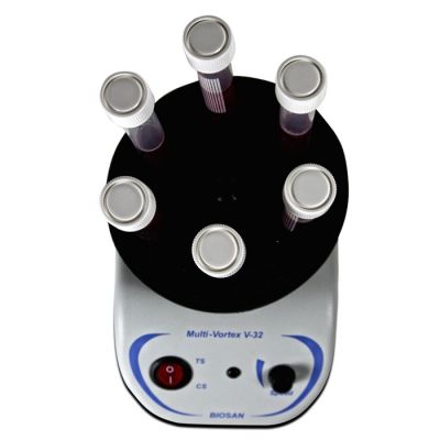 Платформа PV-6/10 предназначена для шести 10-миллилитровых пробирок с максимальным диаметром 15 миллиметров и может использоваться совместно с мультивортексом V-32.