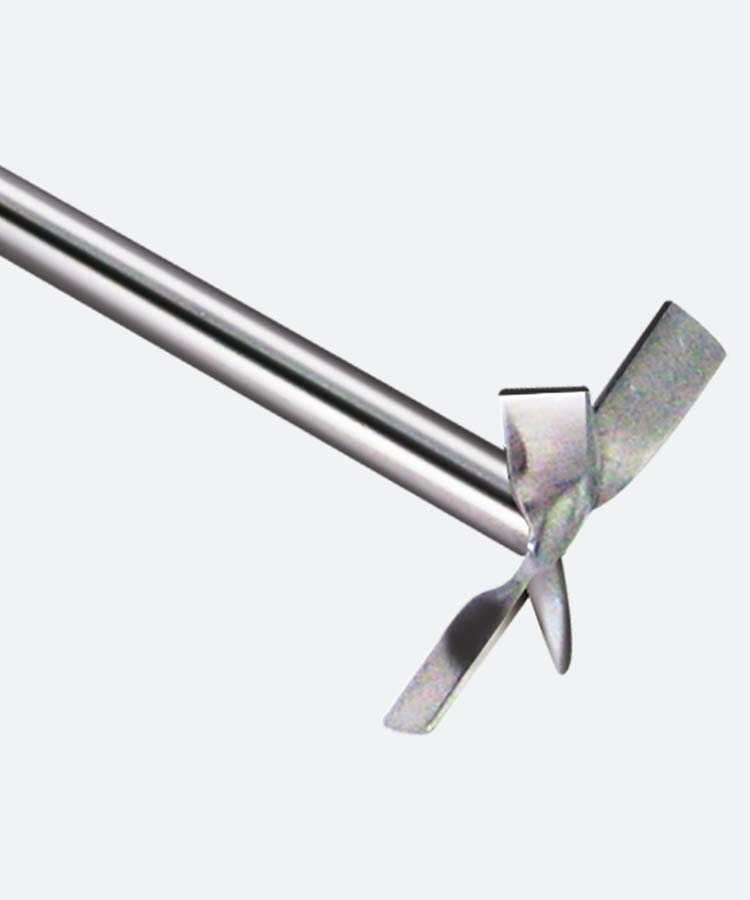 Лопастной перемешивающий элемент, 4 лопасти которого имеют форму пропеллера для оптимального перемешивающего потока. Предназначен для использования с верхнеприводными мешалками Fluko.