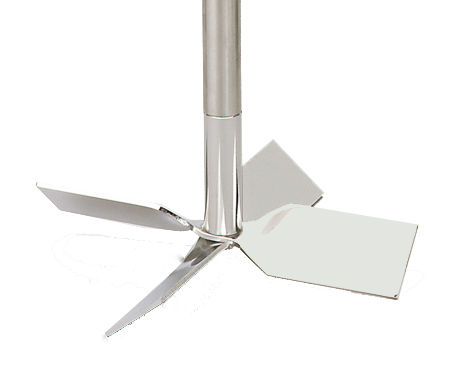 Перемешивающий элемент пропеллерный, 4 закрепленных лопасти, осевой поток, для перемешивания сред низкой и средней вязкости, для гомогенизирования и суспендирования.