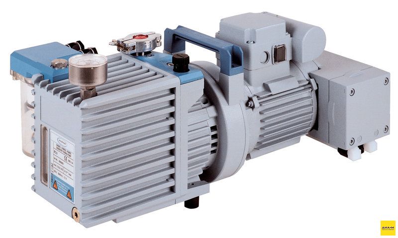 Его основными частями являются двухступенчатый пластинчато-роторный насос и двухступенчатый химический мембранный насос, выполненный из коррозионностойких материалов. Мембранный насос непрерывно откачивает пары из масляной ванны пластинчато-роторного насоса, поддерживая низкое парциальное давление паров растворителей, кислорода и коррозионных газов с тем, чтобы оно было ниже их точки конденсации; насос почти не нуждается в обслуживании и может применяться для сублимационной сушки и в прочих процессах, в которых предельный вакуум должен равняться приблизительно 10-³ мбар.