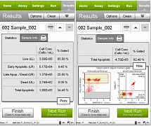 Muse обеспечивает прямое измерение концентрации клеток (без использования референсных частиц) и количественную детекцию флуоресцентных параметров. Оптимизированные наборы реагентов и адаптированные к ним модули программного обеспечения позволяют определять жизнеспособность клеток, апоптоз на разных этапах, исследовать пролиферацию и клеточный цикл, клеточный сигналинг, параметры иммунного статуса и др.