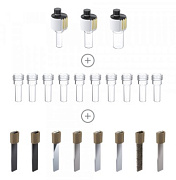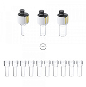 Комплект: базовый модуль Electrasyn 2.0, держатель для стеклянной емкости, реакционный сосуд на 10 мл – 1 шт, электрод графитовый – 2 шт, перемешивающая плита (алюминий), магнитный перемешивающий элемент, набор электродов CV: CV стекловидный электрод, платиновый электрод, электрод сравнений хлорсеребряный.