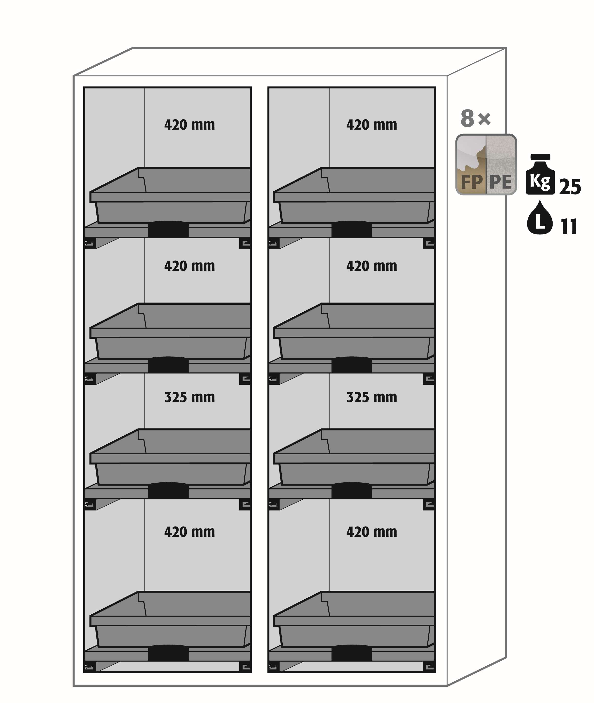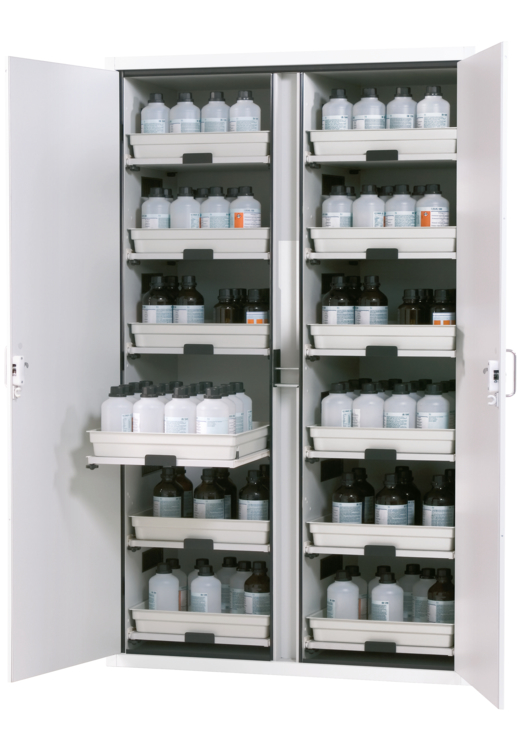 Шкафы для хранения негорючих опасных материалов, ширина 59 – 119 см, распашные дверцы, выдвижные полки SL-Classic, Asecos