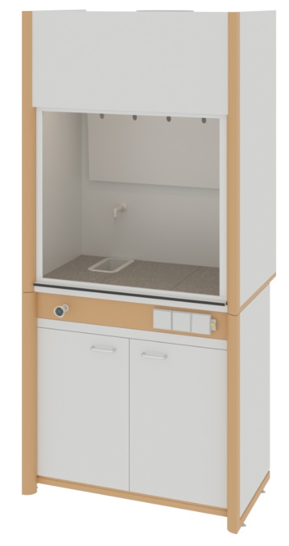 Шкаф вытяжной общего назначения, ширина 94 см, корпус – меламин, столешница – керамогранит, 1 подъемный экран, раковина, тумба, ЛОиП