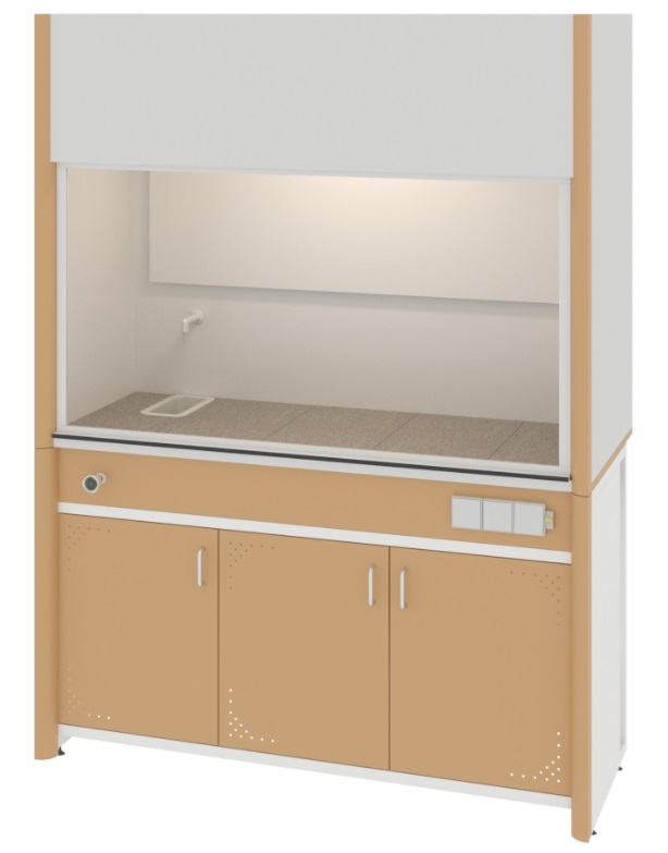Шкаф вытяжной общего назначения, ширина 150 см, корпус — металл, столешница — керамогранит, 2 подъемных экрана, раковина, металлическая тумба, ЛОиП