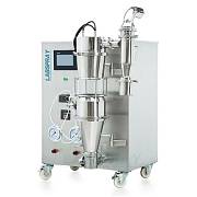 Распылительная сушилка SD-6000 имеет производительность 1500 мл/ч для H₂O, с размером частиц 1-25 мкм. ЖК-дисплей с сенсорным экраном, отображающий параметры: температура воздуха на входе, температура воздуха на выходе, скорость перистальтического насоса, объем воздуха, частота прохождения иглы.