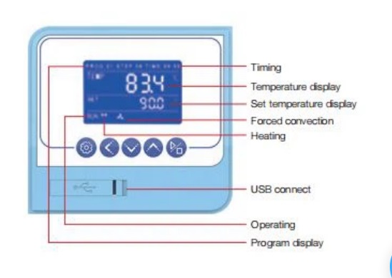 • возможность программирования смены температурных режимов и продолжительности времени (63 сегмента, 1-99 ч 59 мин);