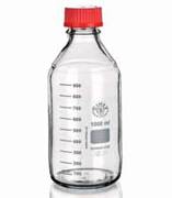Бутыль 250 мл, БС до 500 °С, d горла внешний 45 мм, с завинчивающейся красной крышкой, круглая, светлое стекло, 1 шт/уп, Simax
