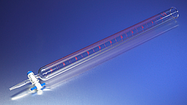 Бюретка, 250 мл, ц.д. 1, класс А, тип 1, исп. 1, с одноходовым тефлоновым краном, цветная шкала, 1 шт, Pyrex (Corning)