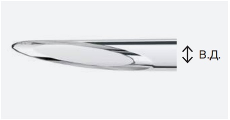 Короткий резкий скос с коротким шипом. Пипетка имеет уникальную форму расширяющегося к основанию конуса, что уменьшает повреждение ооцита. Длина до сгиба пипетки 500 мкм.