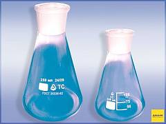 Колба Эрленмейера 100 мл, стекло, до 500 °С, узкое горло, с усиленным ободком, 10 шт./уп., Glassco, Индия
