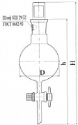 Воронка делительная, грушевидная, шлиф 29/32, запорный кран из PTFE, пробка ПП, Glassco, Индия