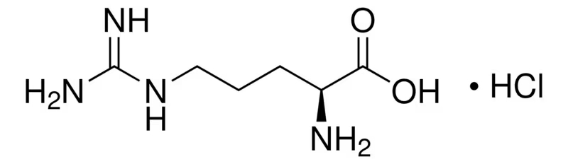 Синонимы: L-2-амино-5-гуанидино-н-валериановой кислоты гидрохлорид, (S)-(+)-2-амино-5-[(аминоиминометил)амино]пентановая кислота моногидрохлорид, (S)-(+)-аргинин гидрохлорид., (S)-(+)-2-Amino-5-[(aminoiminomethyl)amino]pentanoic acid monohydrochloride, (S)-(+)-Arginine hydrochloride.