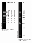 Маркер молекулярного веса ДНК GeneRuler 100 bp содержит 10 фрагментов от 100 до 1000 п.н.; фрагменты: 100, 200, 300, 400, 500, 600, 700, 800, 900, 1000 п.н.; имеет эталонную полосу (повышенной концентрации) при 500 п.н., что облегчает идентификацию в геле; поставляется с буфером для нанесения; условия хранения: -20 °C.