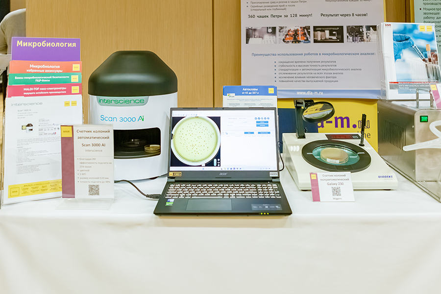 Участникам был предложен широкий выбор приборов: от ручных счетчиков Galaxy 230 до автоматизированных систем стерилизации и вакуумной фильтрации. Особый интерес заслужили гомогенизаторы лопаточного типа BagMixer для подготовки проб и многопозиционные платформы вакуумной фильтрации BioVac, значительно ускоряющие работу лабораторий микробиологического профиля.