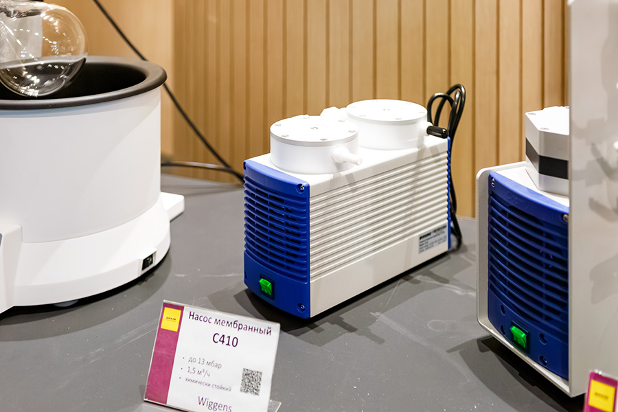 На выставке были представлены готовые решения для химического синтеза. Основу экспозиции составил лабораторный реактор BTG5000 (Wiggens) — система «все в одном» с рубашкой и верхнеприводной мешалкой, способная работать при температурах до 200 °C. Линейку дополнили приборы для упаривания и концентрирования — роторные испарители серий Strike Univ и RE100-S, работающие в связке с химически стойкими вакуумными станциями и мембранными насосами Wiggens.