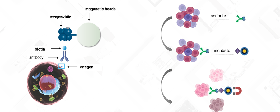 Метод позитивной сепарации клеток в магнитном поле позволяет выделить клетки положительные по тому или иному CD — маркеру. Высокая селективность и надежность метода обеспечивается специфичностью взаимодействия антител, нанесенных на магнитные микросферы, с CD — рецепторами на поверхности клеток. При помещении в магнитное поле, клетки, провзаимодействовавшие с антителами, будет задерживаться в колонке за счёт перемагничивания. Не связанные клетки, отрицательные по интересующему нас CD — маркера, проходят без помех. При снятии магнитного поля, клетки легко элюируются из колонки и могут бы собраны в отдельную пробирку, для последующего использования.