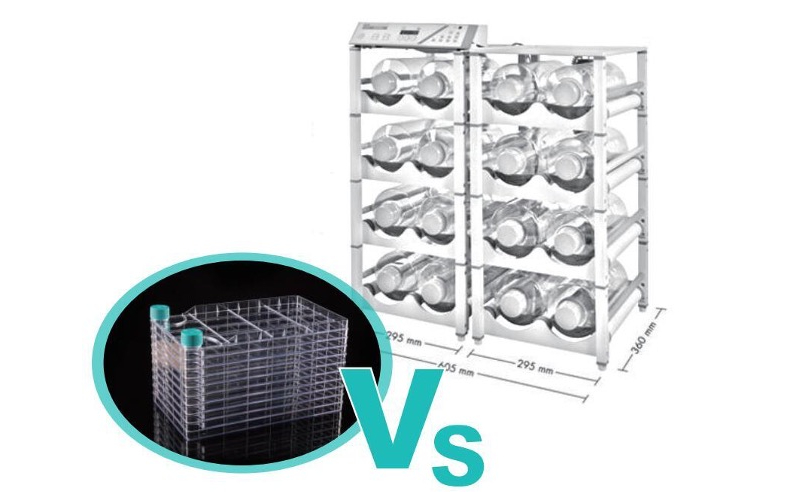 Рис. 3. Клеточная фабрика на 10 слоев BioFactoryTM, Nest в сравнении с роллерными установками
