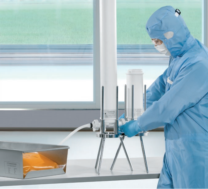 Одноразовые мешки используются не только в культивировании, но и в очистке фарм субстанций. Пленка, из которой они сделаны, проходит массу тестов и анализов, и получает соответствующие сертификаты, что даже позволяет использовать мешки в процессе получения препаратов крови. Универсальность материала позволяет их применять для широкого диапазона задач, на протяжении всего процесса производства, начиная от приготовления питательной среды (Рис. 8) и сбора культуральной жидкости, заканчивая стерилизующей фильтрацией (Рис. 9) и хранением.