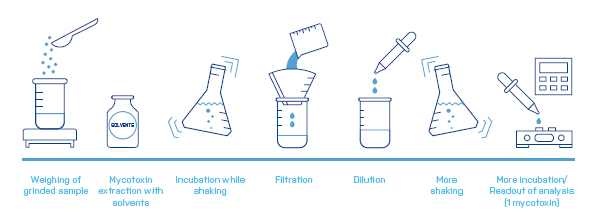 Рис. 1 Типичные этапы ручного тестирования на микотоксины