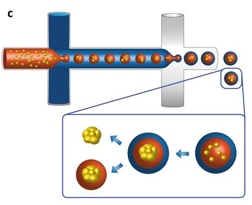 Технология микрофлюидики позволяет получить внутри двойных капель клеточные агрегаты контролируемого размера в диапазоне от 50 до 80 мкм, а затем выделить их, действуя агентом, разрушающим эмульсию. Кроме того, есть возможность в качестве внутренней фазы использовать раствор гидрогеля, который после образования клеточных сфероидов инкапсулирует их в защитную гелевую оболочку.