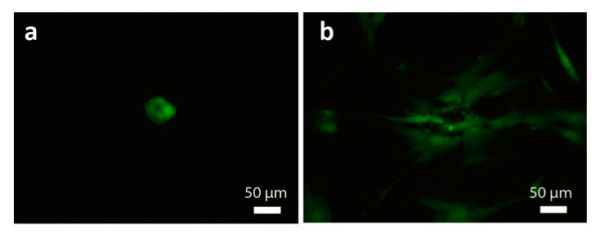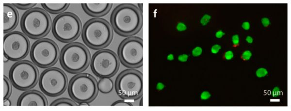 В приведенной научной работе использовали человеческие мезенхимальные стволовые клетки (hMSC) для получения сфероидов в альгинате и в альгинат-аргинин-глицин-аспарагиновой кислоте (альгинат-RGD). Было продемонстрировано, что полученный микрогель обладает высокой способностью к остеогенной тканевой дифференцировке (может использоваться для восстановления костной ткани - прим.)